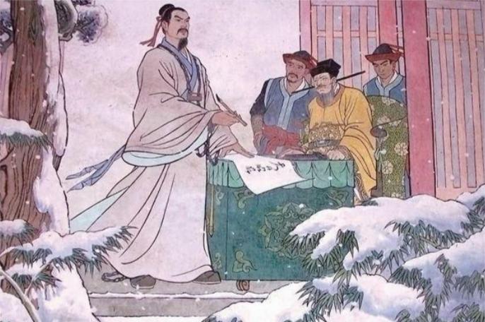 【看这里,这一幅名叫“风波冤狱”,讲述的正是岳飞在风波亭被人诬陷,签字画押认罪的场景。】
