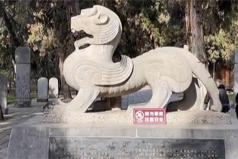 【进门之后,我们首先看到的还是一座石辟邪,这座石辟邪看起来保存的十分完好,但是这其实是仿品而已,真品现在保存在洛阳博物馆中,感兴趣的小伙伴们可以去洛阳博物馆看看,感受一下东汉的古韵。】
