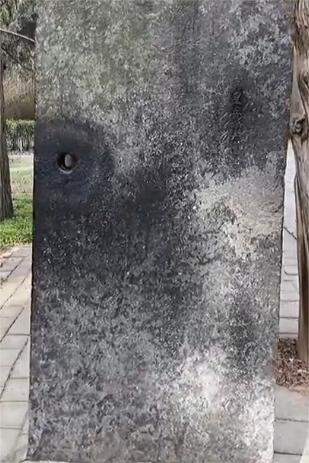 【靠近石碑边缘的地方有一个小孔,看起来还是很明显的!】